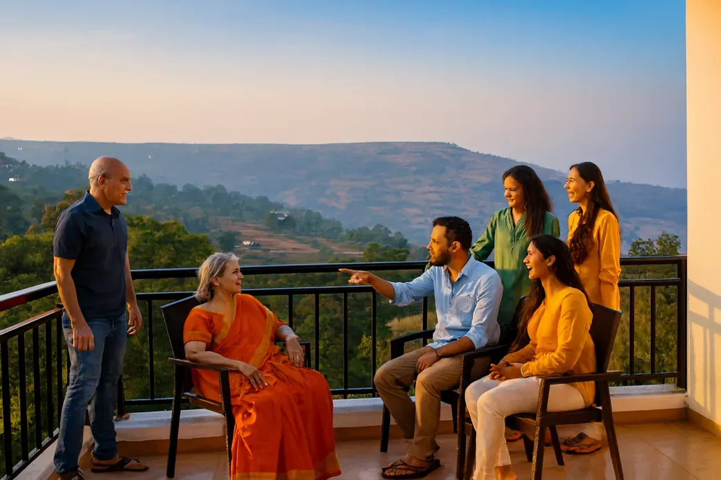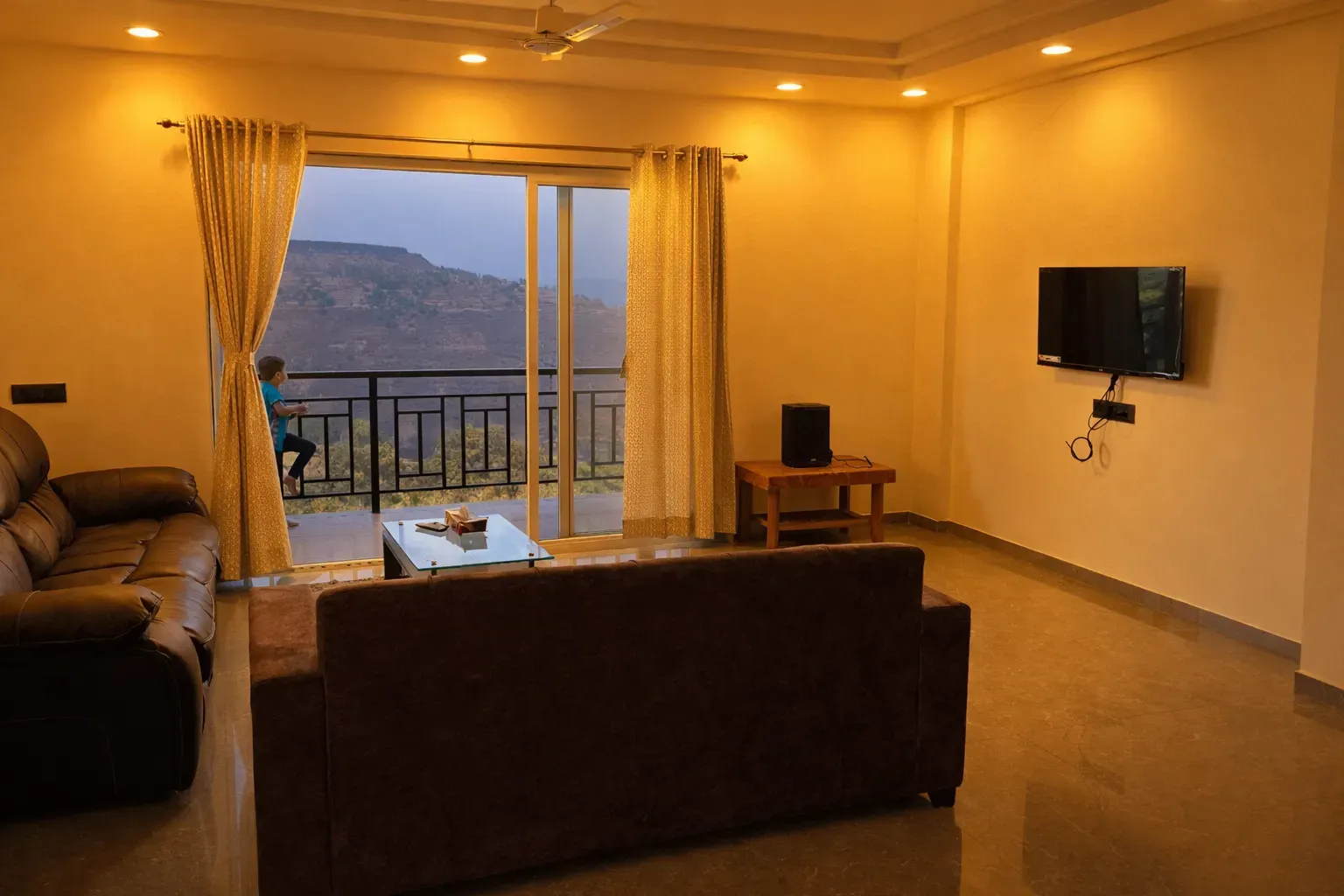 A Private Villa stay in Panchgani offers more space, privacy, homely food and comfort compared to hotels. Guests can enjoy valley views, peaceful surroundings, fresh air, and easy access to sightseeing spots while staying in a calm and scenic location.